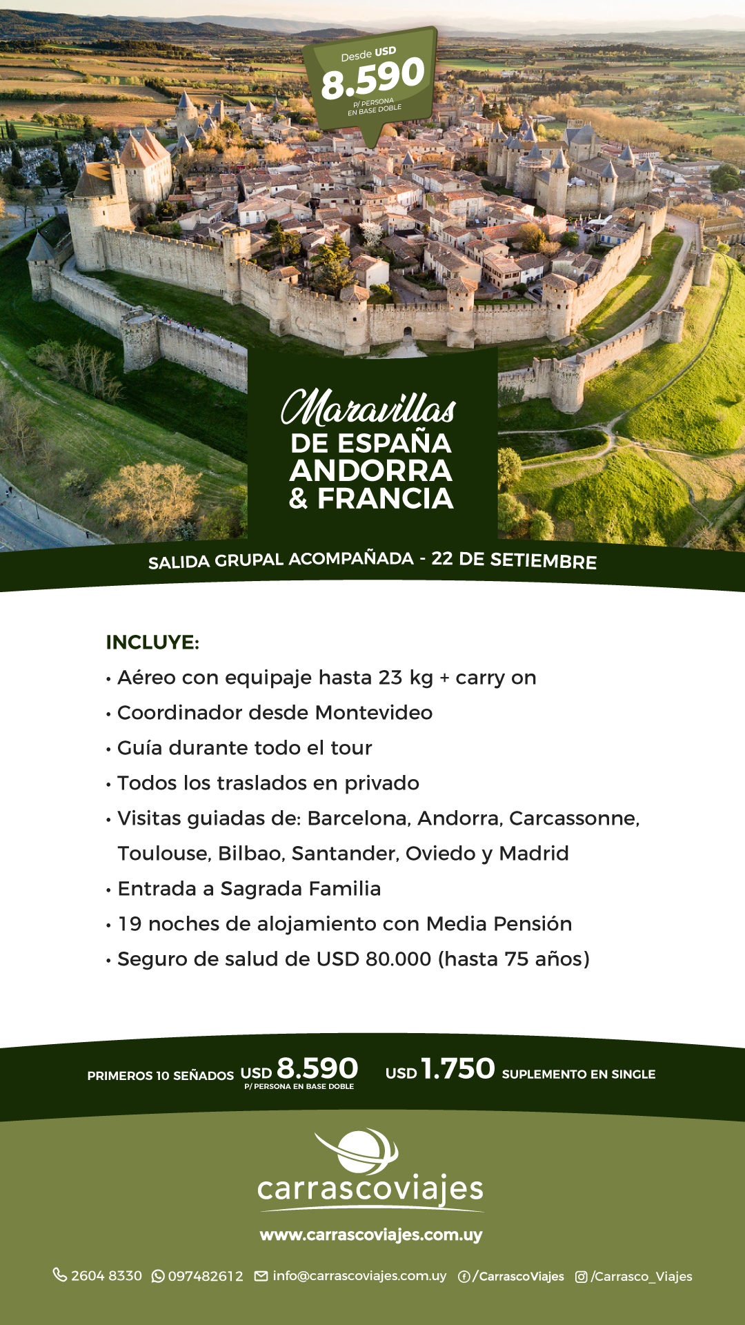 ✔ Visitas guiadas de: Barcelona, Andorra, Carcassonne, Toulouse, Bilbao, Santander, Oviedo y Madrid